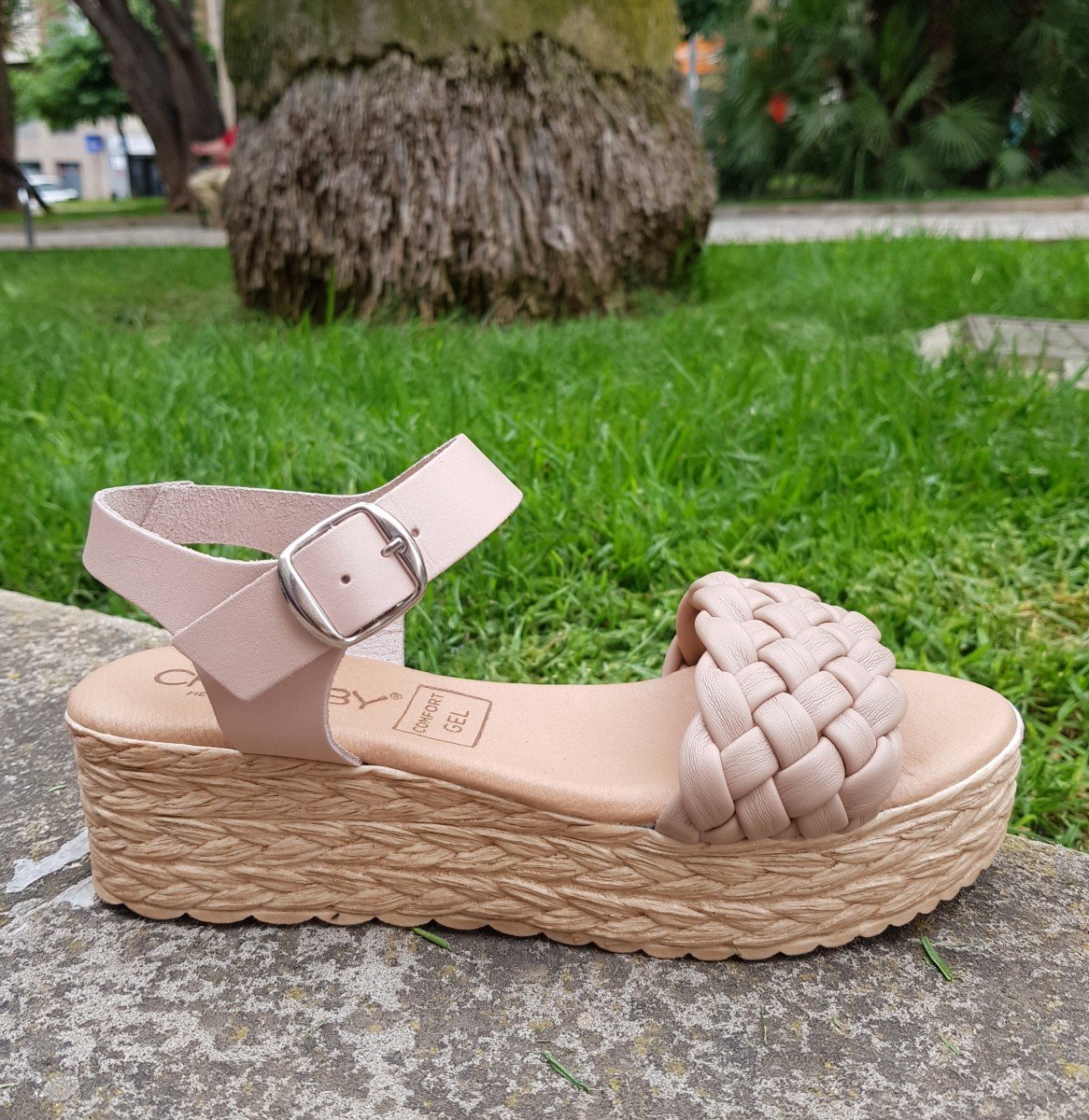 SANDALIA EN PIEL Y PLANTA DE GEL