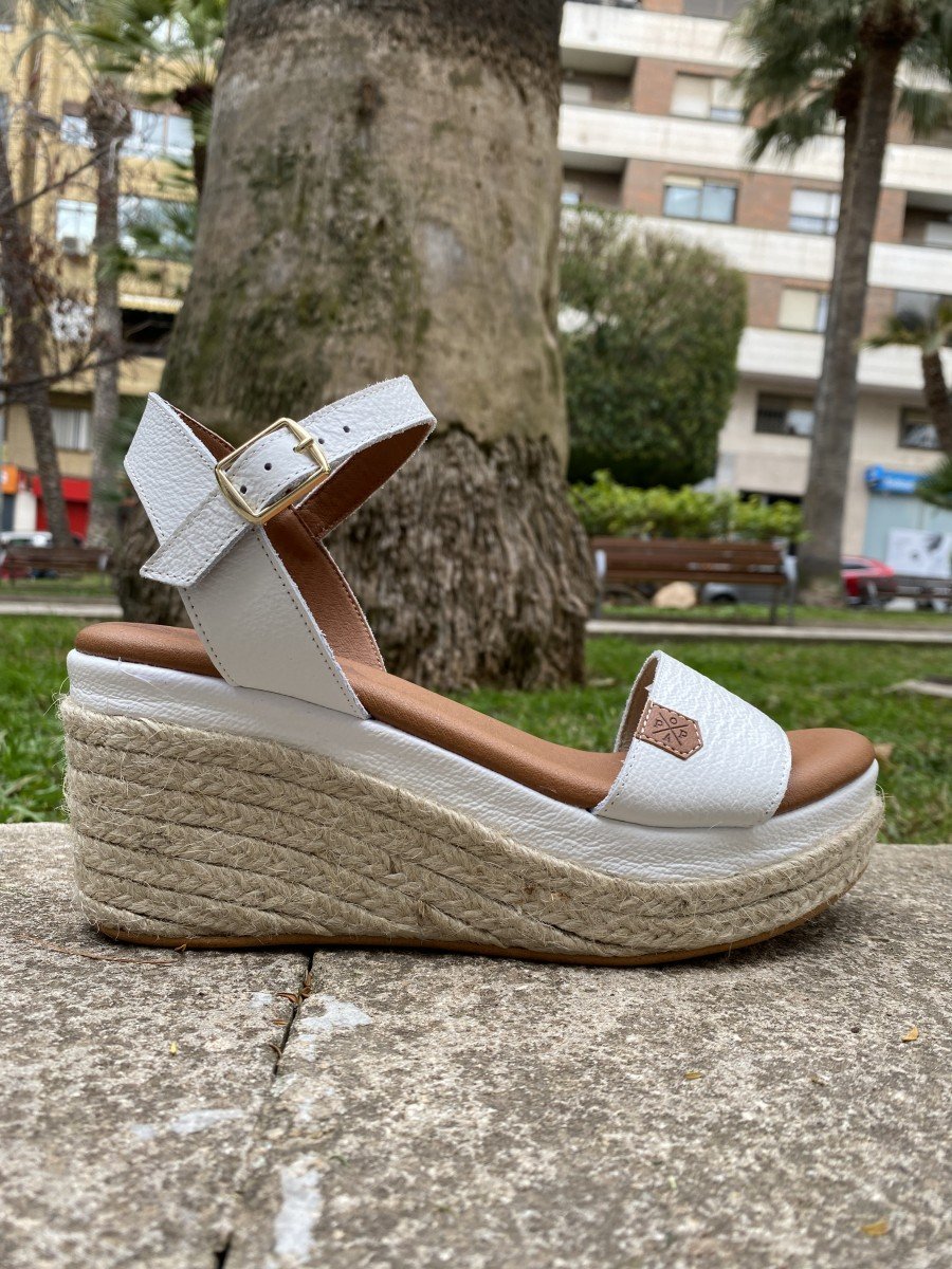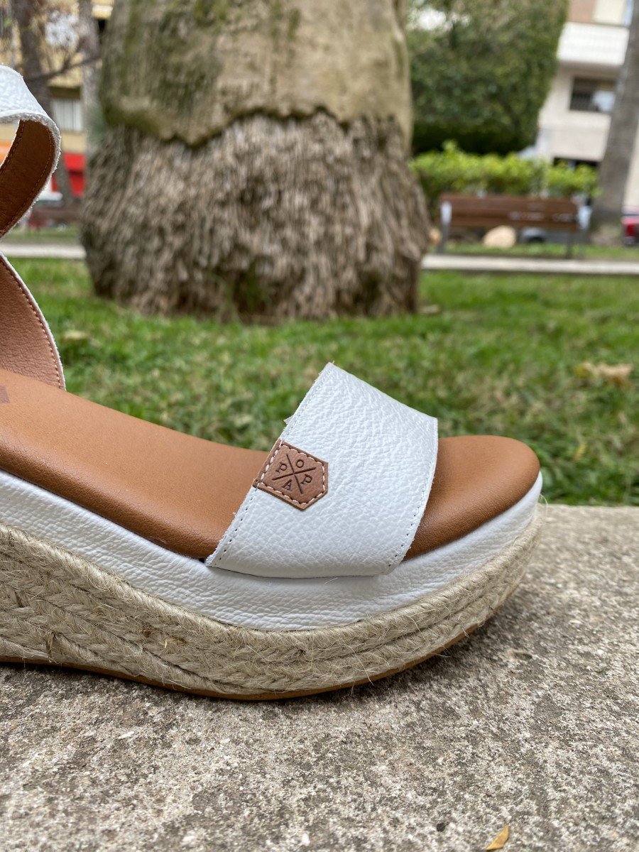 • Cuña de mujer en piel en color blanco de la marca Popa.