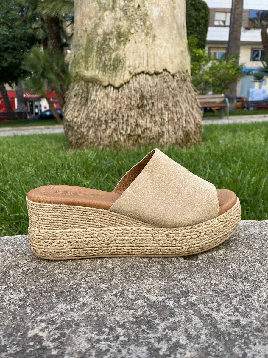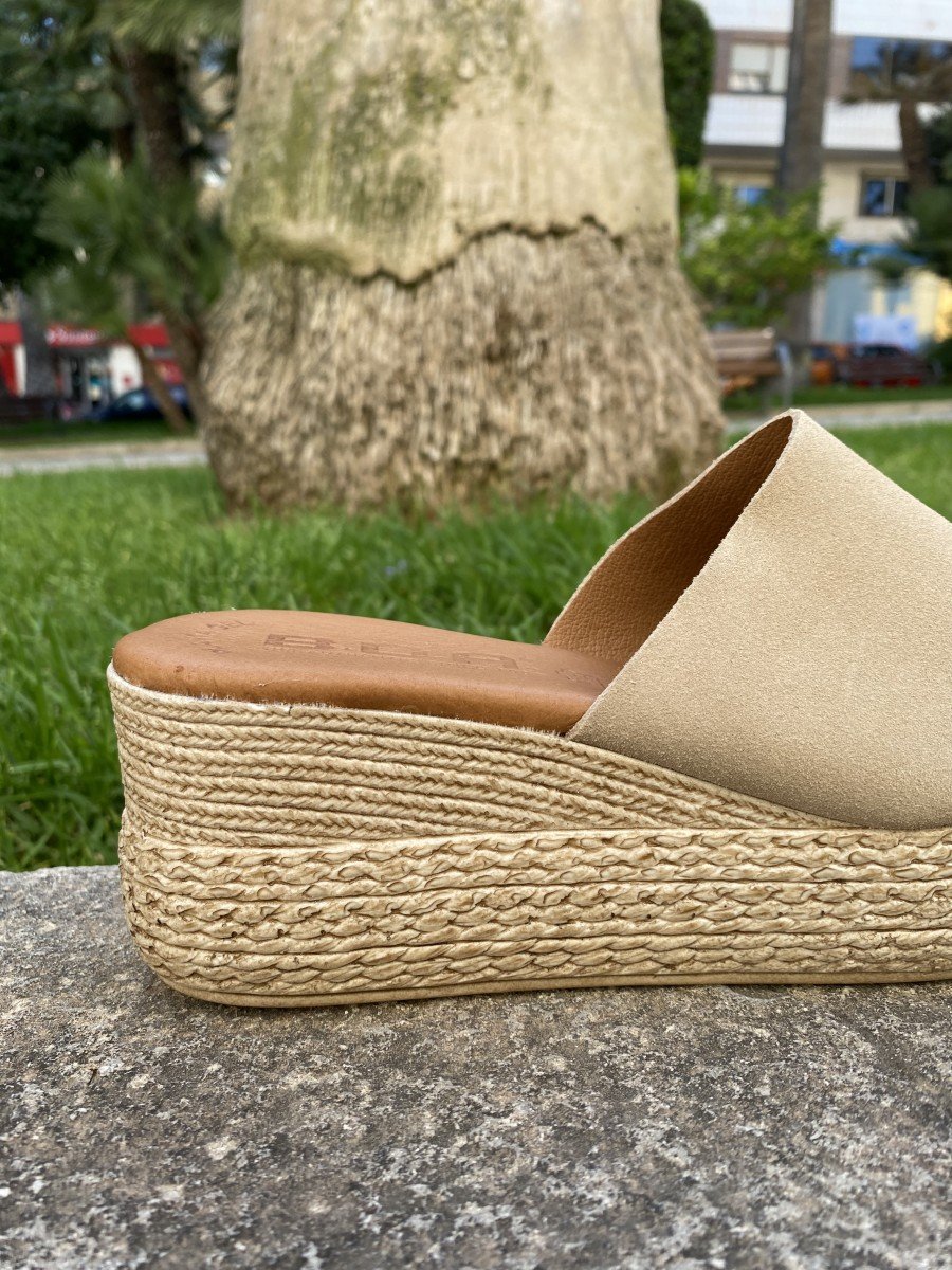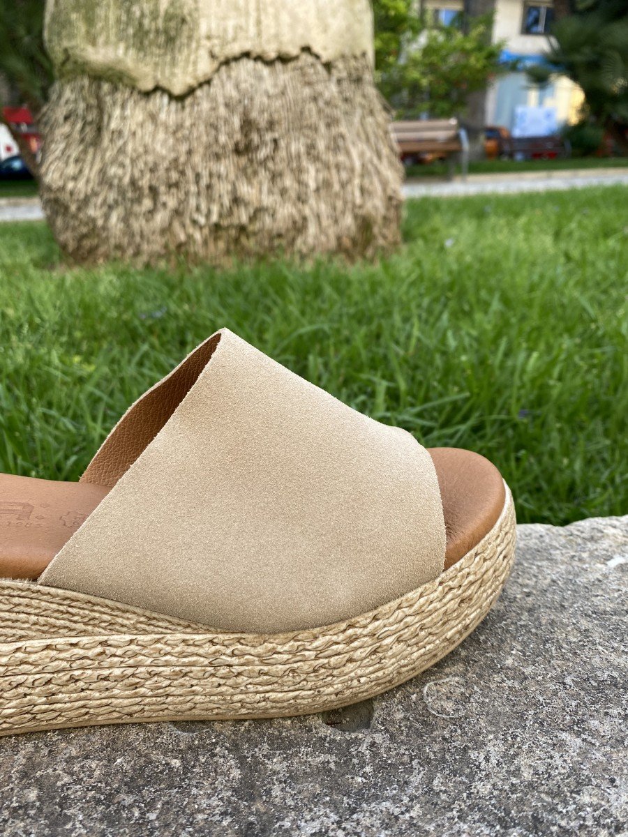 Sandalia tipo zueco piel serraje beige 3767